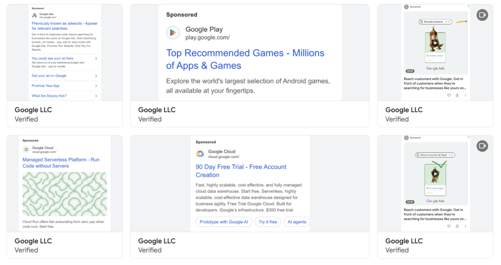 Here is the tricky part: You cannot click on the ads inside the Transparency Center. Google disables the links to protect the advertisers.